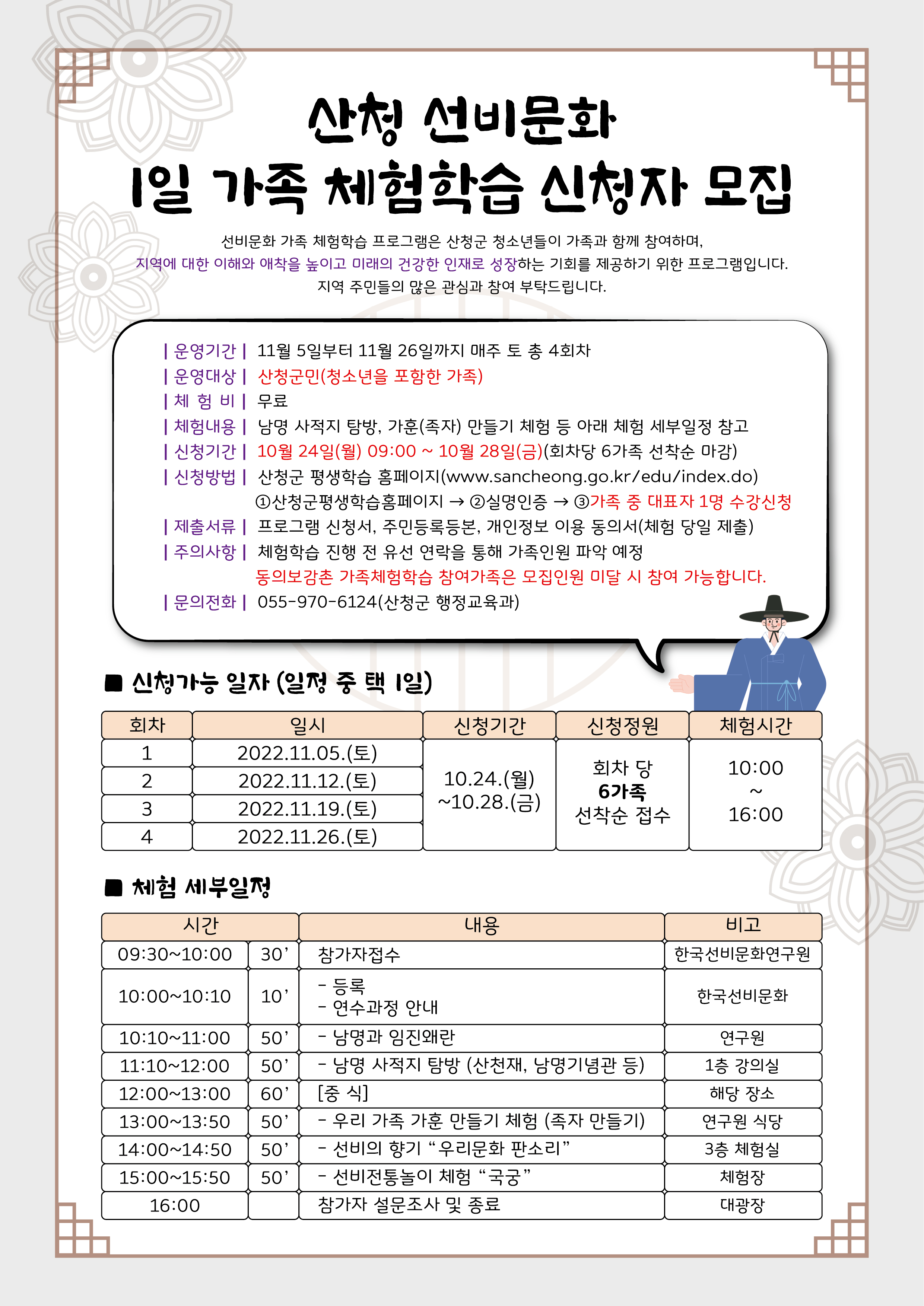 산청 선비문화 1일 가족 체험학습 신청자 모집 안내