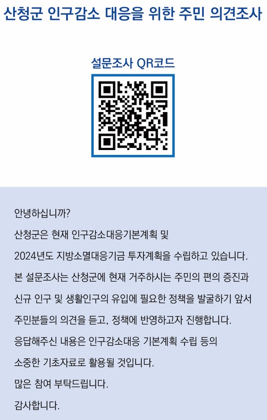 산청군 인구감소대응 주민설문조사 참여 협조
